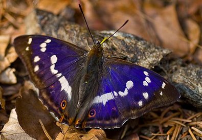 Fig. 2: En Suisse, le Petit Mars changeant (Apatura ilia) a deux variantes de couleurs. La forme clytie présente des reflets rougeâtres. Foto: Gilles Carron