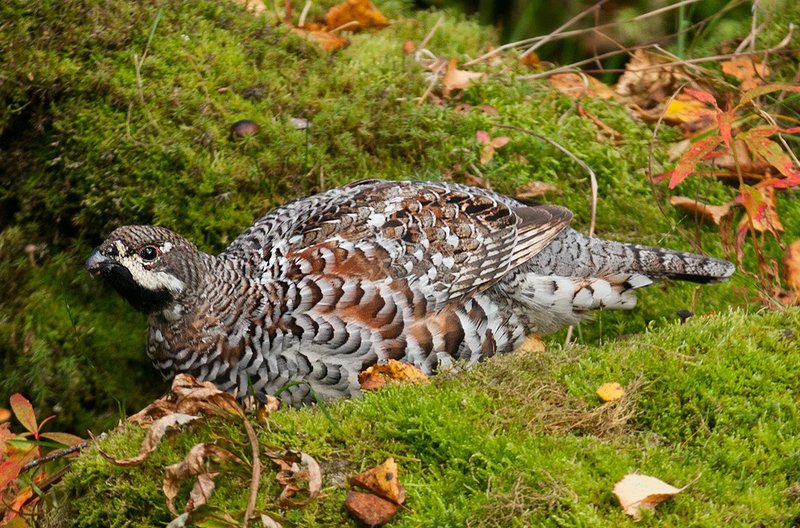 Principales caractéristiques: Brun, brunâtre et tacheté de blanc et gris, queue avec bande noire terminale bordée de blanc. Coq avec la gorge noire. Coiffe relevée en cas d'excitation. Oiseau bien adapté à la végétation et au sol forestier par son camouflage; voix haut perchée et sifflante. Pattes partiellement emplumées. Appartient aux tétraonidés, comme le grand tétras, le tétraslyre et le lagopède alpin.