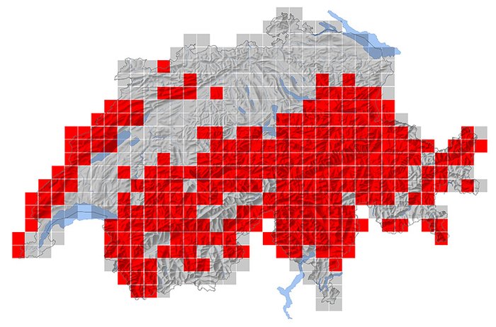 Répartition de la Gélinotte des bois 2013–2016 © Station ornithologique suisse
