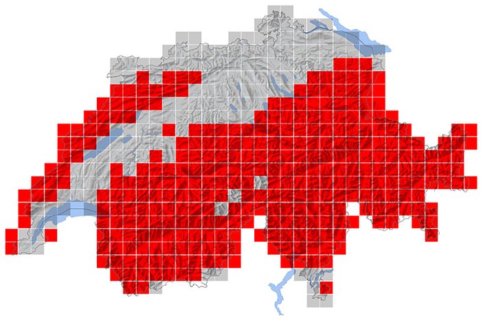Répartition du Casse-noix moucheté 2013–2016 © Station ornithologique suisse