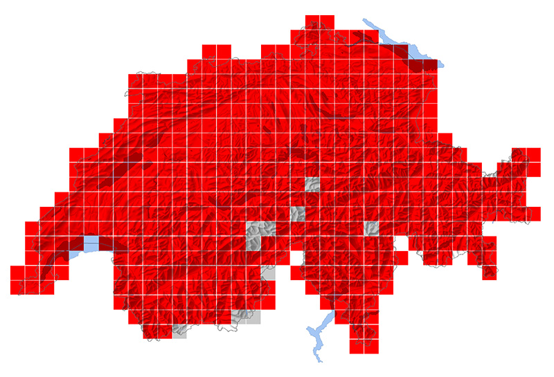 Tendance:Oiseau largement répandu en Suisse avec des effectifs élevés et en augmentation.