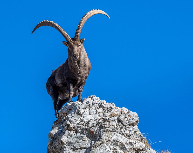 Figure 1 - Le bouquetin est toujours une espèce protégée en Suisse. Depuis 1977, cependant, la plupart des populations sont régulées par la chasse. Son effecif est en légère augmentation et en 2022, était de plus de 19'000 animaux. Environ 1000 bouquetins sont abattus chaque année. Photo: Josef Senn (WSL)