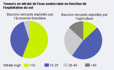Fig. 3. Teneurs en nitrate de l’eau souterraine. Source: Rapport forestier 2005 (NAQUA 2002)