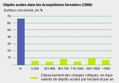 Fig. 5. Dépôts acides dans les écosystèmes forestiers. Source: Rapport forestier 2005 (Meteotest 2004)