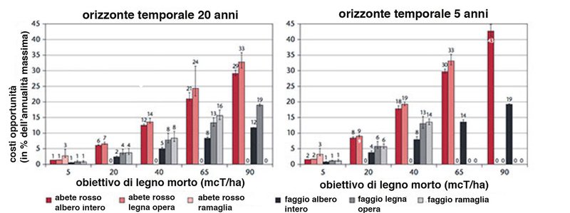 “Il perseguimento di un obiettivo specifico in termini di offerta di legno morto non ha alcun effetto sul risultato operativo finanziario aziendale in relazione alla scelta delle specie arboree, alla variante di utilizzazione adottata e all’orizzonte temporale”