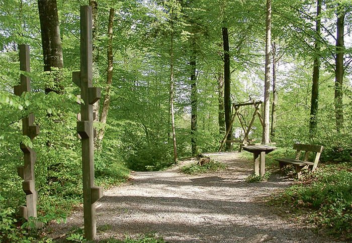 Fig. 3 - Sentieri o percorsi pavimentati, attrezzature da gioco, tavoli o panchine sono considerati come opere ai sensi della responsabilità del proprietario d’opera . Per garantire una sufficiente sicurezza, non solo le opere, ma anche gli alberi nelle vicinanze dovrebbero essere controllati. A fini probatori si dovrebbero protocollare le visite di controllo. Foto: Urs Wegmann