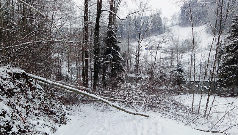 Fig. 4 - Per fortuna non è successo niente! In alcuni Cantoni l’obbligo di curare i margini boschivi lungo le strade viene trasferito ai proprietari dei boschi. Foto: Urs Wegmann