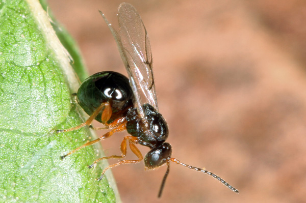 Il cinipide galligeno del castagno (Dryocosmus kuriphilus), una piccola vespa originaria della Cina, è considerato nel mondo intero come uno dei principali nemici del castagno. Lo sviluppo delle uova all’interno delle gemme stimola la formazione di galle di colore verde brillante o rosa sui giovani rametti, sulle foglie o sui piccioli (Figura 2). Il ciclo completo dello sviluppo larvale si svolge all’interno di queste galle; mentre dopo il volo degli adulti in estate, le galle si seccano e assumono una colorazione marrone scura, prima di cadere al suolo dopo due o tre anni. Un attacco del cinipide galligeno non provoca necessariamente la morte del suo albero ospite, anche se la crescita degli alberi colpiti, oltre che la loro produzione di frutti, possono risultare notevolmente ridotte.
