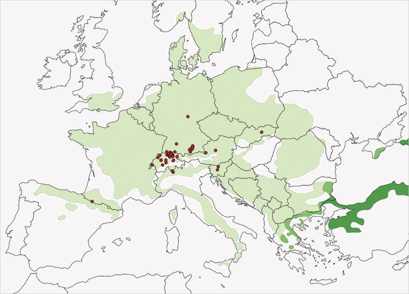 Il fungo è ormai stato osservato in tutta la Svizzera, nella Germania meridionale e centrale, in Austria, in Slovacchia e Slovenia, e nei Pirenei francesi. Il fungo non è stato ancora rilevato nell’Europa del Nord e del Sud.