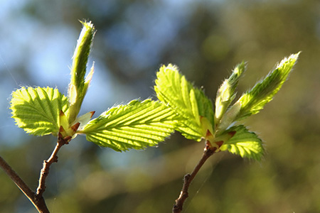 Fig. 1 - Foglia di faggio infettata da P. liobae con tipiche macchie necrotiche di forma e dimensioni irregolari. Foto: Ludwig Beenken (WSL)