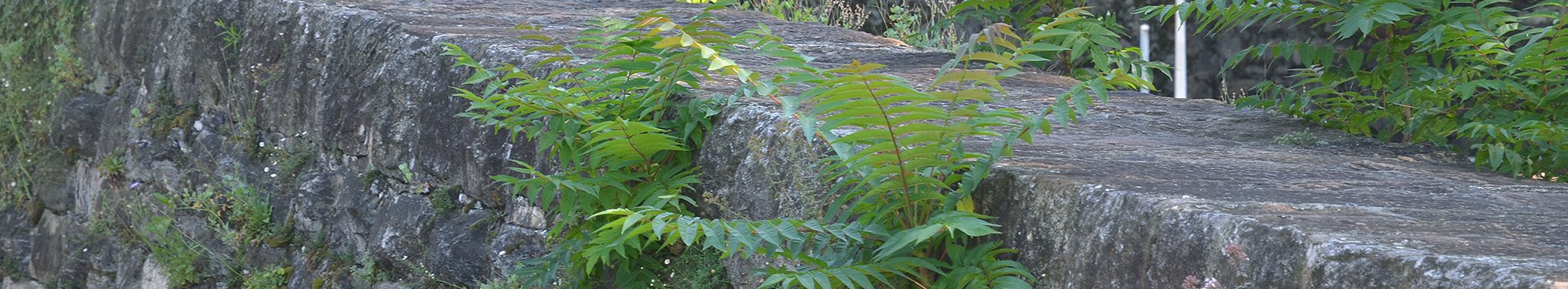 Fig. 6. Giovani esemplari di ailanto cresciuti sulla massicciata dei ripari del torrente Dragonato nell’area urbana di Bellinzona (TI). Foto: Rita Conedera