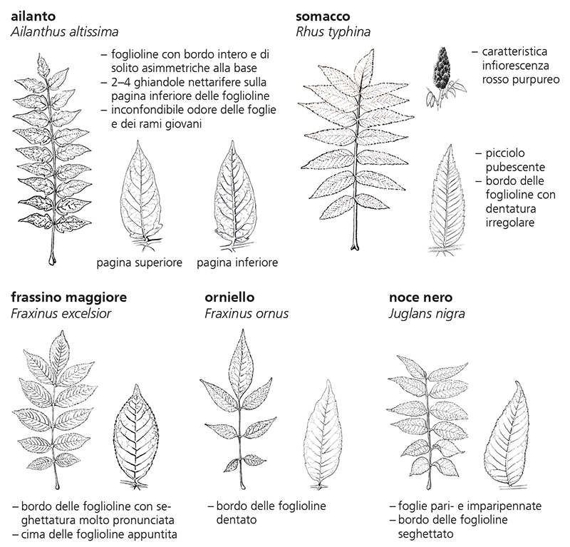 - Possibilità di confusione: sommacco, frassino maggiore, orniello, noce nero (fig. 2)