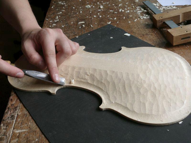 Fig. 2 - Per la costruzione di violini il legno di risonanza di abete rosso viene usato quale prima scelta pregiata per realizzare le tavole armoniche, ciò le coperture frontali provviste dei due tipici intagli chiamati "effe". Per il fondo del violino è invece usuale impiegare legno di acero. Foto: Philippe Domont