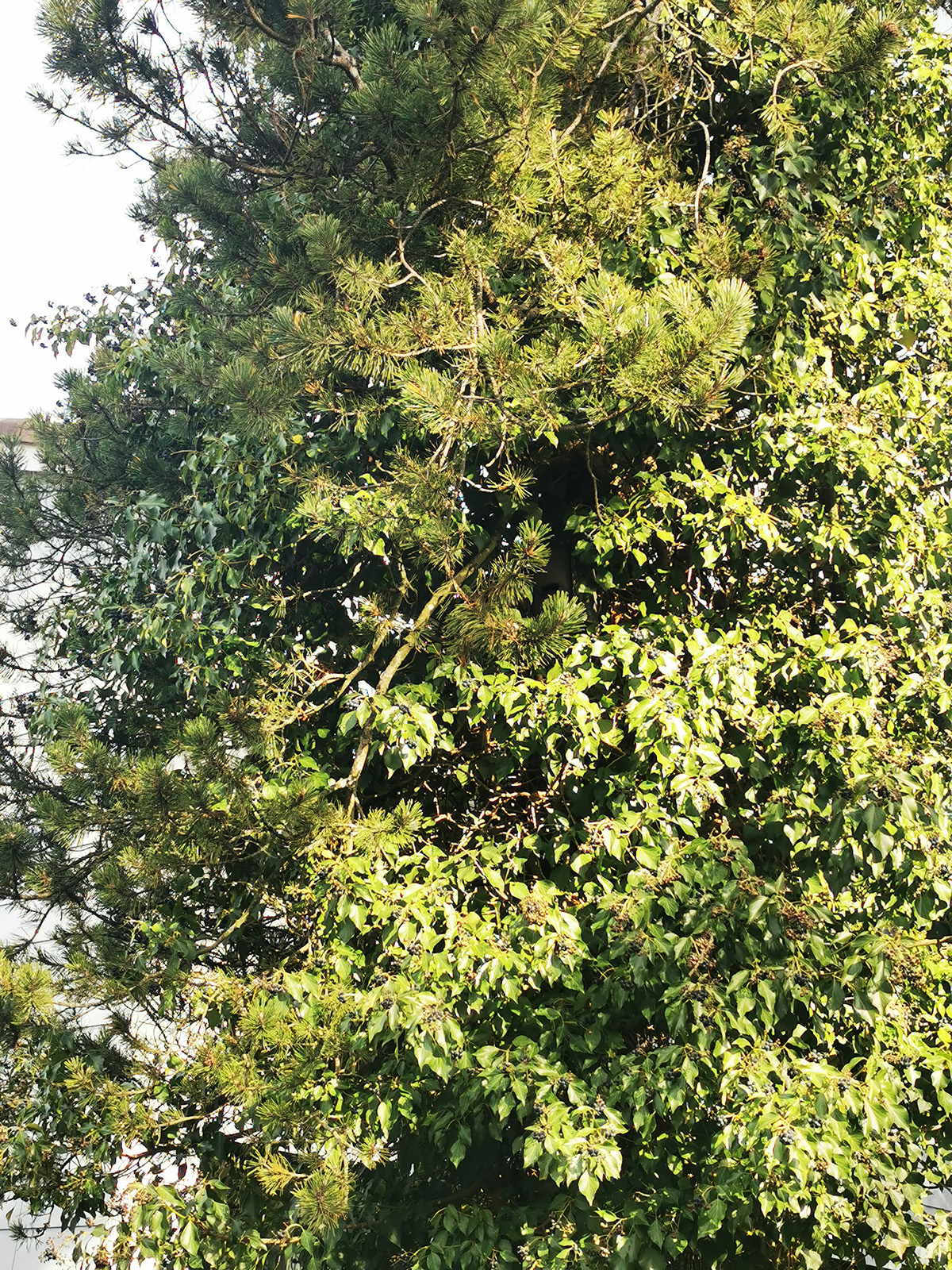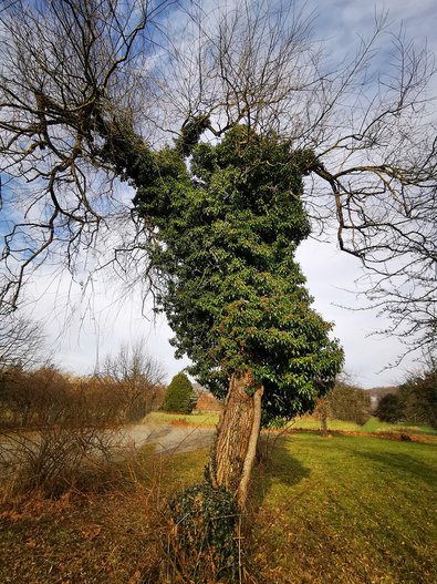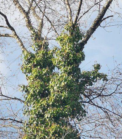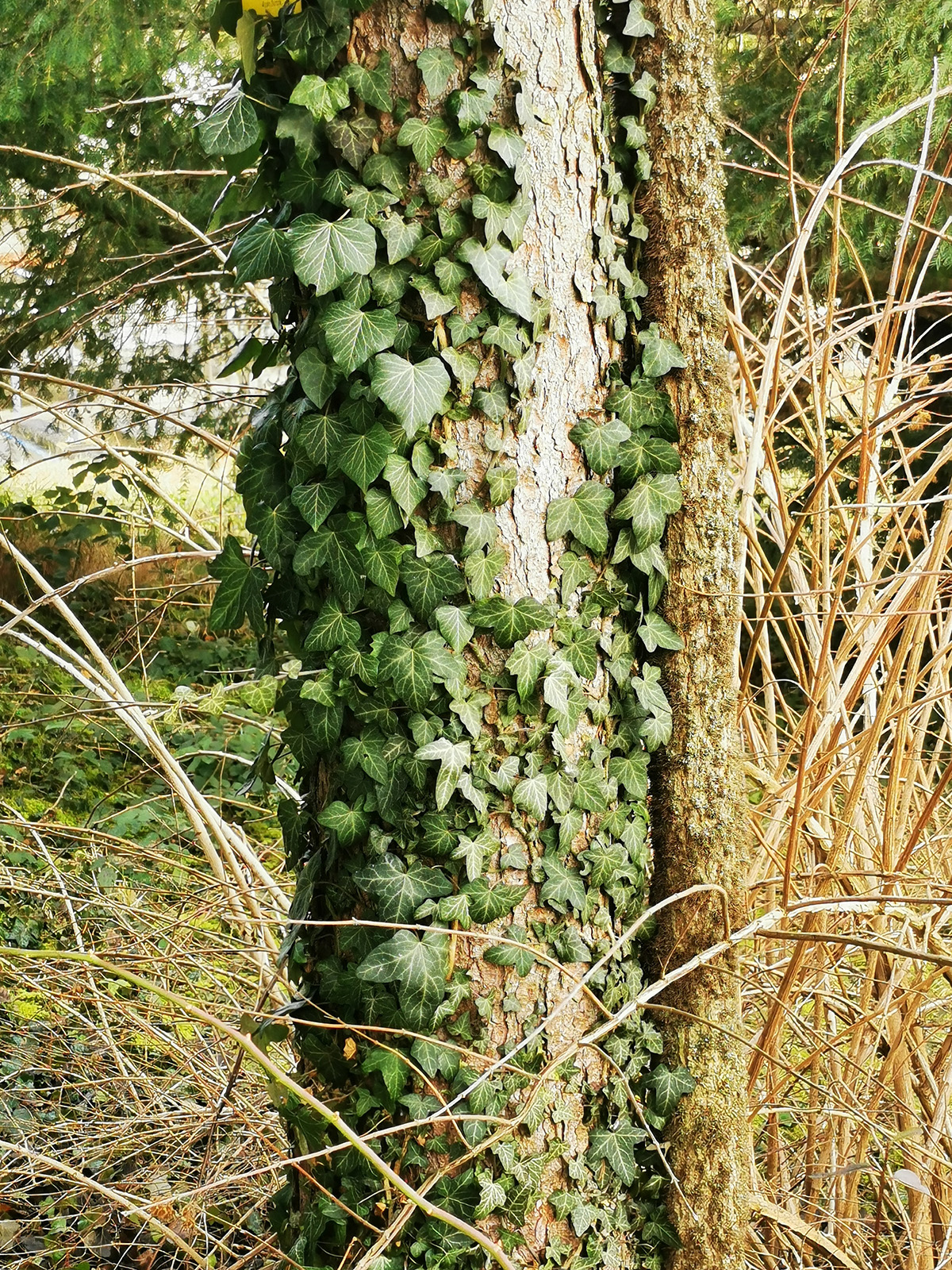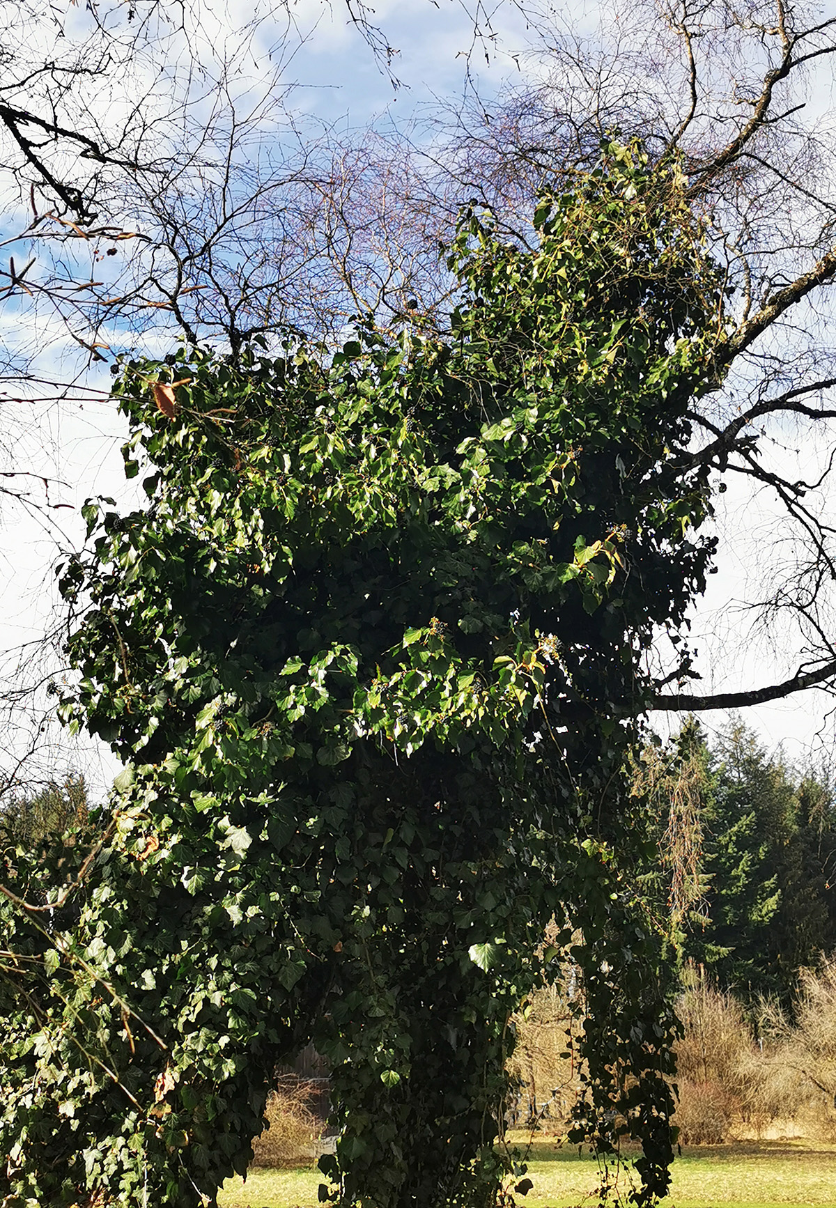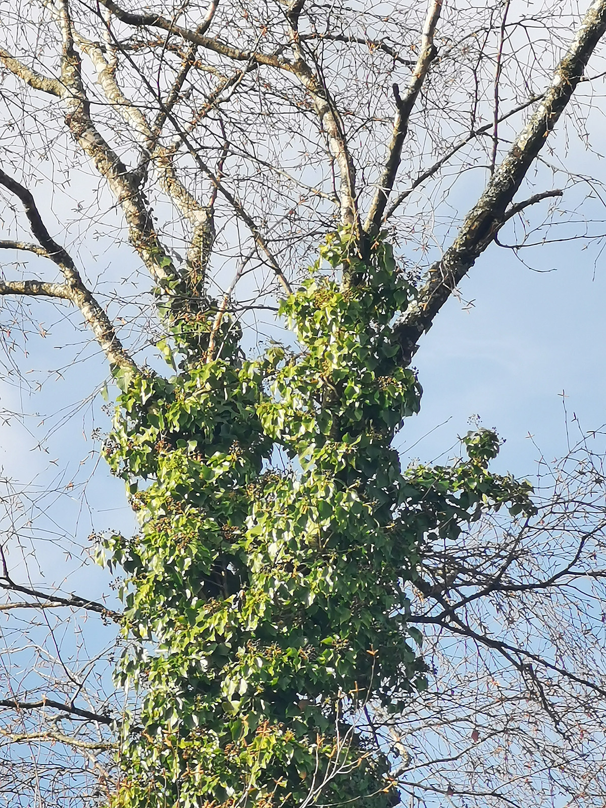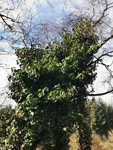 - Se la chioma di un albero è effettivamente invasa, il proprietario dell'albero deve scegliere tra l'albero e l'edera. Se l'albero ha la priorità, l'edera può essere tagliata alla base della chioma. In nessun caso deve essere rimossa completamente. In questo modo, l'edera può continuare a svolgere le sue altre importanti funzioni ecosistematiche.
