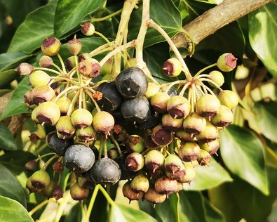 - Poiché l'edera fiorisce tardi, essa costituisce un'importante fonte di cibo per insetti come coleotteri, cimici, farfalle, sirfidi, api, vespe, cimici o sirfidi, dato che ci sono solo circa 20 altre specie di piante che fioriscono anch'esse nel medesimo periodo.