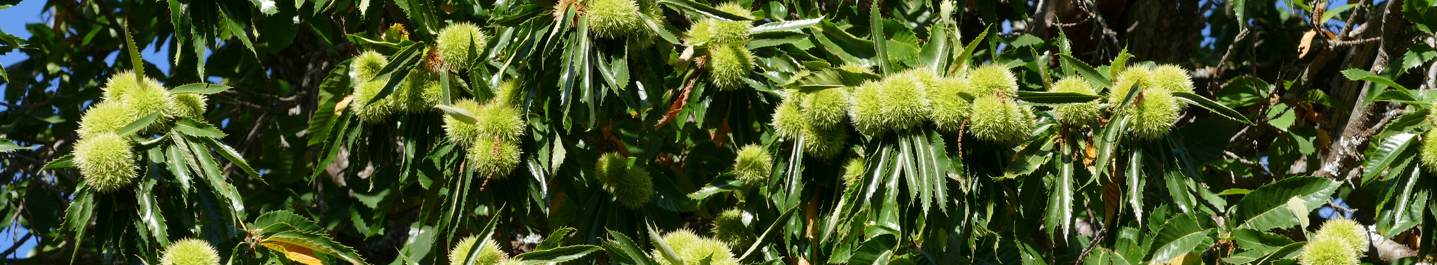 Fig. 1- Le castagne maturano negli spinosi ricci e in alto nelle chiome degli alberi. La loro raccolta risulta per questo una delle fasi più costose delprocesso produttivo. Foto: Thomas Reich (WSL)