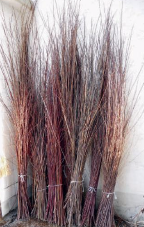 Fig. 6. Getti di salice per legare o per intreccio appena tagliati, raccolti in fasci e pronti per l'essiccazione. Foto: Kirstin Stroebel