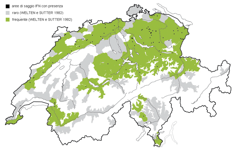 La Svizzera si trova proprio al centro dell'areale principale di distribuzione europeo del tasso (Taxus baccata). Le aree di presenza più significative si trovano nell'Altipiano orientale, nel Giura e al margine esterno delle Alpi tra i laghi Bodanico e quello di Thun, oltre che la parte inferiore della valle del Rodano. L'ammassamento delle aree di saggio dell'IFN1 con presenza del tasso (figura 2, punti neri) è indice di veri e propri centri di diffusione.