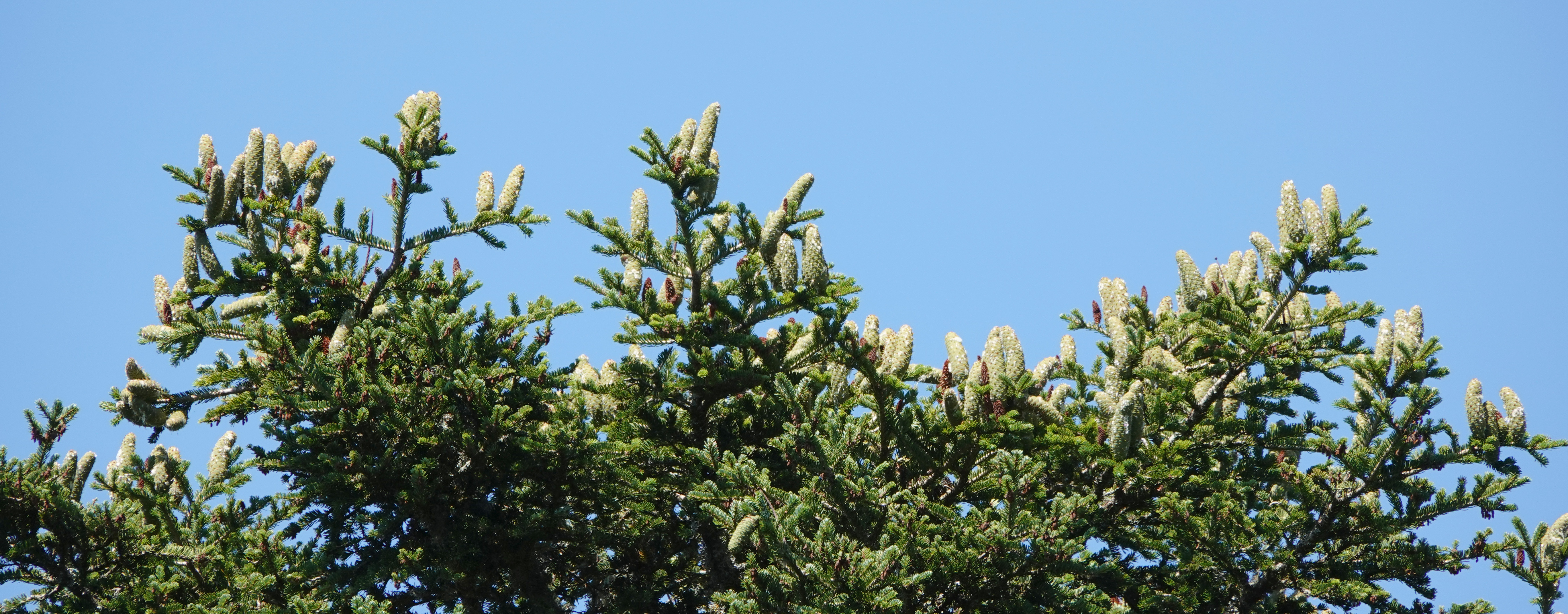 Fig. 2 - I coni dell’abete bianco (detti anche "pigne" o "strobili" in termine scientifico, sono disposti in senso verticale, dunque al contrario rispetto alla posizione pendente dei coni di abete rosso. Foto: Ulrich Wasem (WSL)
