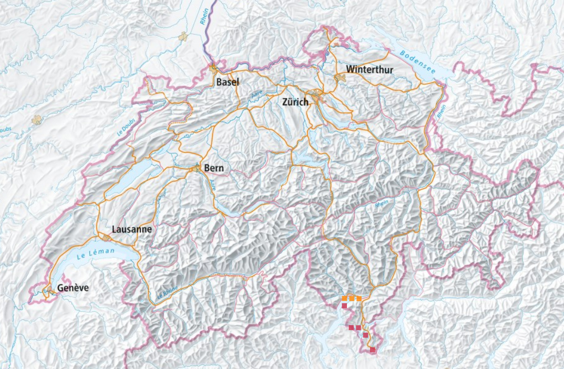Distribuzione del ghiozzo (Padogobius bonelli) in Svizzera. Punti rossi: dopo il 2010; punti arancioni: prima del 2010. © info fauna