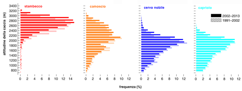 Lo studio mostra che il comportamento degli ungulati dipende dalle condizioni climatiche durante la stagione della caccia e varia di anno in anno. Quando l’autunno è caldo e privo di neve, i luoghi in cui vengono abbattuti cervi nobili, camosci e stambecchi si trovano ad altitudini più alte. Queste sono le specie che per nutrirsi dipendono prevalentemente da pascoli montani e prati alpini. Per quanto riguarda il capriolo, che è più legato ai suoi territori e al bosco, la migrazione alle quote più alte è stata invece meno pronunciata.