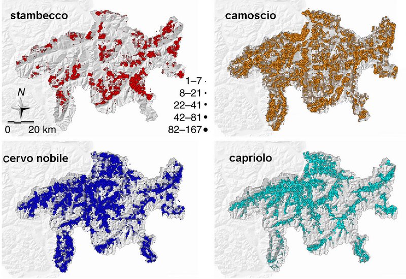 Negli ultimi decenni la scienza ha documentato numerosi esempi di specie animali e vegetali che si sono trasferite per vivere a quote più alte a causa dei cambiamenti climatici. Come ha dimostratoun gruppo internazionale di ricercatori sotto la guida dell’Istituto federale di ricerca WSLcon l’aiuto di una raccolta di dati unica nel suo genere a livello mondiale, questa migrazione riguarda anche le specie di ungulati tipiche delle Alpi: l’Ufficio per la caccia e la pesca dei Gigioni ha infatti documentato più di 230’000 siti nei Grigioni nei quali tra il 1991 e il 2013 sono stati abbattuti caprioli, cervi nobili, camosci e stambecchi.
