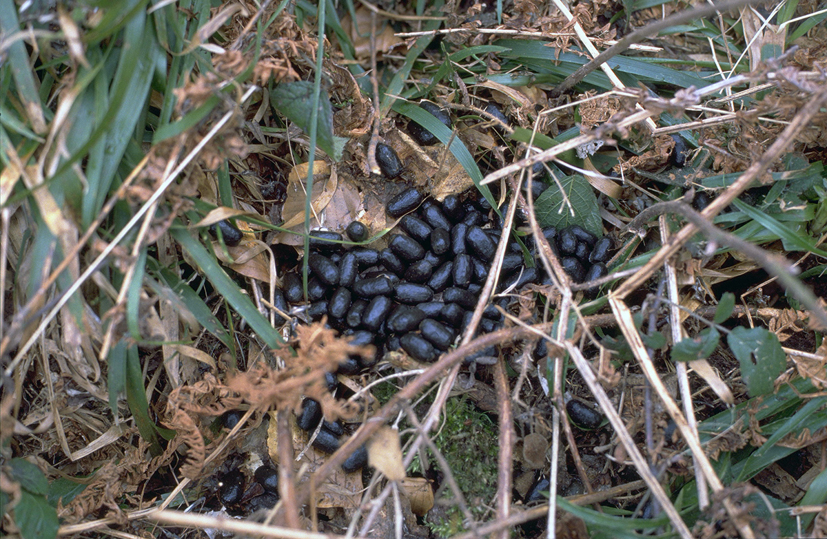 Le tracce della presenza del cervo più facili da osservare sono le impronte degli zoccoli (larghe da 30 a 65 mm e lunghe da 40 a 80 mm) e lo sterco. Questi escrementi caratteristici si presentano come cilindri lunghi circa 20-25 mm, appuntiti a un'estremità, che possono essere osservati sia singolarmente che raggruppati in pacchetti di 4-5 cm di diametro.