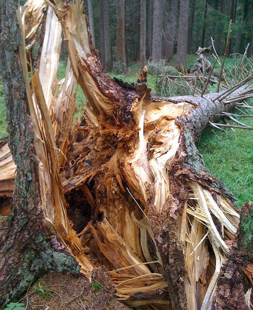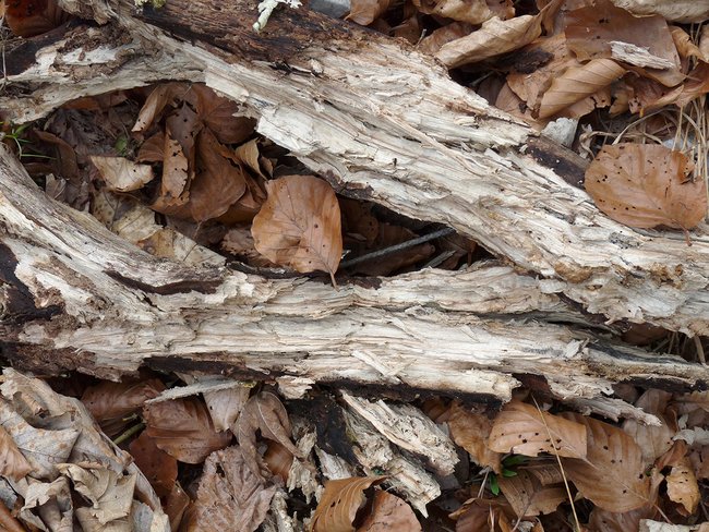 La maggior parte dei funghi lignicoli degli alberi appartengono all’ordine dei polipori (Polyporales) e fanno parte della divisione dei basidiomiceti (Basidomycetes). I loro corpi fruttiferi si formano di solito solo quando la decomposizione del legno all’interno dei tronchi è già a uno stadio avanzato. Le spore, che hanno dimensioni di pochi micrometri, maturano nei pori situati all'interno del corpo fruttifero. Non appena le spore sono mature, fuoriescono dai pori e vengono diffuse dal vento. I funghi lignicoli degli alberi sono noti per il loro geotropismo, cioè da una crescita dei corpi fruttiferi guidata dalla forza di gravità, affinché i pori siano sempre perpendicolari rispetto alla terra. Di conseguenza, i corpi fruttiferi che si sono sviluppati su un albero in piedi continuano a crescere con un angolo diverso, dopo che l'albero è caduto al suolo (v. Fig. 4).