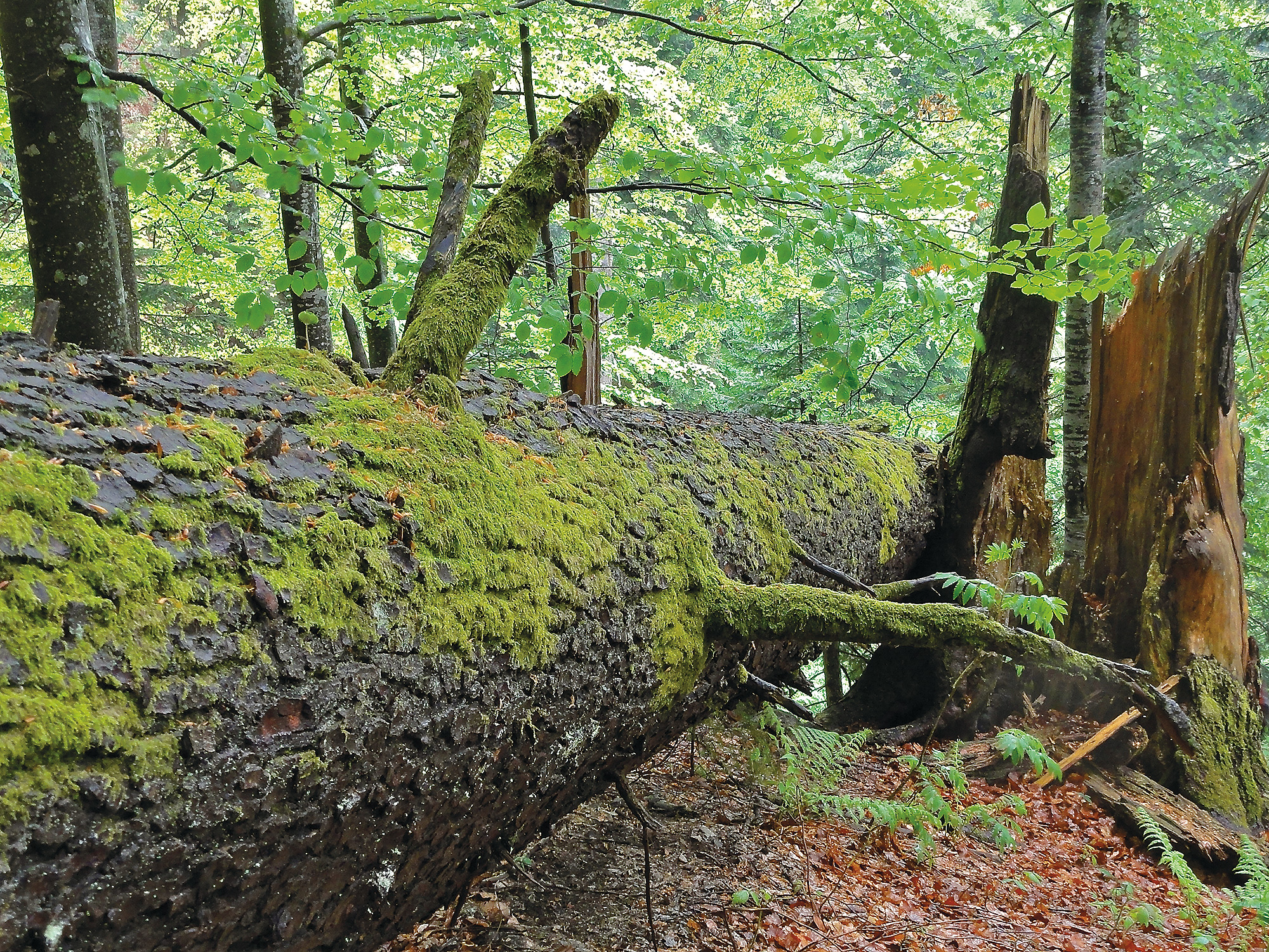Fig. 4. Un ruolo importante è svolto pure dal legno morto nelle operazioni di rinnovazione delle foreste in ambienti umidi. Foto: Ueli Wasem (WSL)