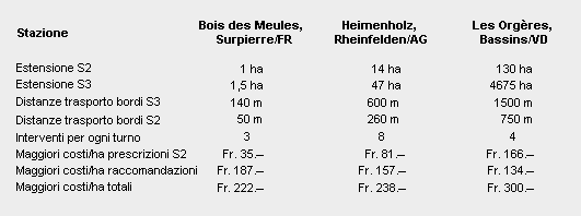 A titolo di confronto i costi totali per anno per l'insieme delle operazioni di produzione di legname sopportati dalle aziende forestali dell'Altipiano tra il 2001 e il 2006 ammontavano mediamente a Fr. 1'026.-/ha e a Fr. 707.-/ha per il Giura. Si può pertanto affermare che il rispetto delle prescrizioni legali e delle raccomandazioni in materia di protezione delle acque sotterranee in foresta, aumenta gli oneri sopportati dai proprietari dei boschi situati nelle zone di protezione delle captazioni nelle condizioni più sfavorevoli del 40 fino al 50%.