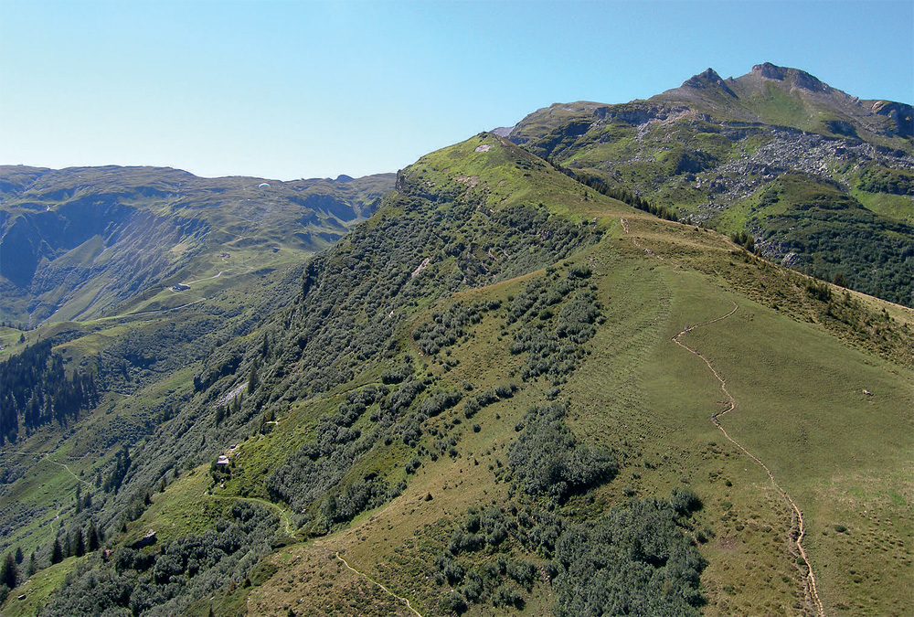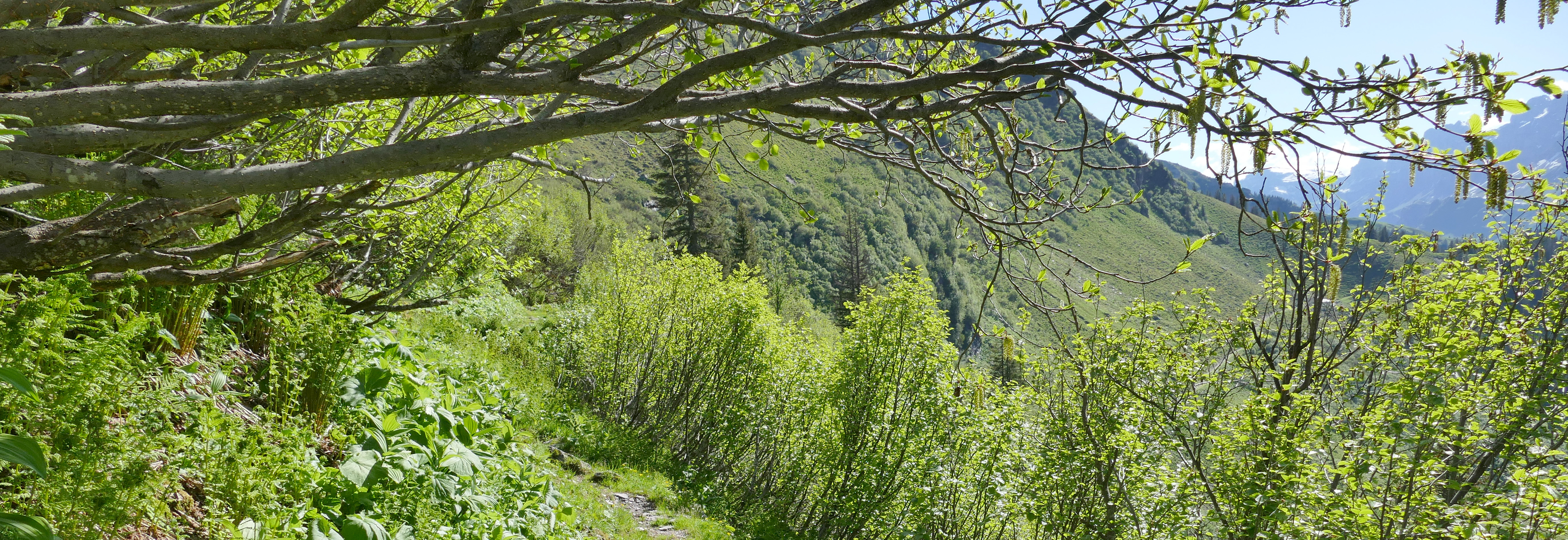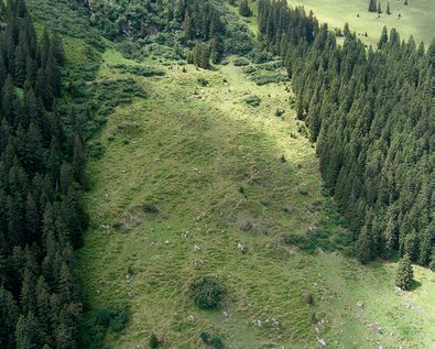 Inoltre, in caso di calo gli alpeggi o abbandono delle regioni d’estivazione a quote non esposte al pericolo di valanghe, è possibile guidare il passaggio a fustaia dei pascoli alpestri incentivando in modo mirato le specie arboree desiderate come l’abete rosso, sino a quando per le specie boschive principali l’ontano verde non è più un concorrente.