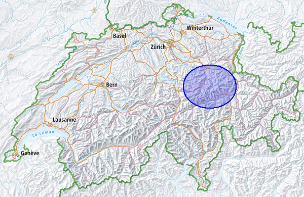 - in una parte della regione del Surselva nel Cantone dei Grigioni (soprattutto la valle principale)